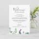 Ces cartes d'accueil et d'itinéraires de mariage lavande rustique sont parfaites pour un mariage extérieur simple et élégant. Le design floral présente des feuilles d'eucalyptus aquarelle et de la verdure avec des sprigs de fleurs sauvages violets. Le recto de la carte comporte une lettre de bienvenue et le verso de la carte indique l'itinéraire du mariage. Ces notes sont parfaites pour les mariages de destination et les sacs de bienvenue des clients de l'hôtel.