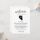 Partagez un message de bienvenue pour vos invités mariages du Nevada, ainsi qu'un itinéraire ou l'horaire des événements du week-end. Avant affiche votre message de bienvenue avec une carte silhouette de l'état du Nevada avec un coeur à l'intérieur. Personnalisez l'envers avec votre itinéraire de mariage ou de week-end mariage. Parfait pour inclure dans l'hôtel des sacs de bienvenue ou livrer dans les chambres de vos invités.