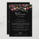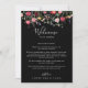 Cette lettre d'accueil de mariage fleur sauvage multicolore est parfaite pour un mariage rustique. Le design présente un assortiment multicolore de fleurs sauvages roses, rousses, violettes, jaunes, blanches, violettes, rouges, bordeaux dans un arrière - plan noir. Personnalisez le devant avec un message de bienvenue pour vos invités et vos noms. Personnalisez le dos avec le calendrier des événements et autres informations utiles.