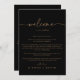 Cette lettre de bienvenue mariage en or noir classique est parfaite pour un mariage moderne. Le design sobre et élégant présente une typographie de script classique et sophistiquée en or. Personnalisez le devant avec un message de bienvenue pour vos invités et vos noms. Personnalisez le dos avec le calendrier des événements et autres informations utiles.
