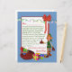 Adorable lettre personnalisée du Père Noël à votre enfant, avec un espace modèle sur le dessus pour vous permettre d'ajouter votre nom de petit garçon ou de petite fille. Cette lettre de Père Noël, présente un elfes de Père Noël avec un sac de jouets! M. Elf fait le signe du pouce avec son pouce... et il y a un brin lumineux et coloré de lumières de Noël, et un arc rouge vif au-dessus de la lettre ! L'arrière - plan est bleu avec des flocons de neige blancs, au centre de la page est une zone de centre blanc encadré rouge avec une adorable lettre de Père Noël déjà écrite et prêt pour vous à personnaliser avec le nom de votre enfant. Votre enfant sera ravi de recevoir cette adorable lettre de Père Noël lui-même ! Pour plus de modèles de lettres de Noël Père Noël, en-têtes de lettres de vacances, lettres à Père Noël, et d'autres articles correspondants tels que enveloppes, timbres, cartes de voeux et cartes postales.. visitez notre magasin!