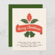 Carte de Noël attrayante de style vintage avec typographie et couleurs rouge et vert. Champs de modèle de texte des deux côtés vous permettent de rédiger votre lettre de mise à jour annuelle pour vos amis et votre famille. Les enveloppes ne sont pas incluses.
