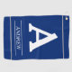 Ces caractéristiques de conception élégantes et bleues de serviette de golf un grands, personnalisés monogramme/lettre initiale, avec un nom personnalisable. Ce pourrait être un cadeau d'amusement pour quelqu'un qui aime jouer au golf.