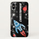 Protégez l'iphone de votre enfant contre les coups et les accidents rénaux, avec ce coque iphone de fusée spatiale cool. Personnalisez avec vos enfants nom jusqu'à 11 lettres. Cet exemple dit "Christopher". (***Veuillez noter que certains noms ne correspondent pas toujours en raison de la nature de la police. Conçu et illustré par Sarah Trett pour www.mylittleeden.com