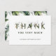 Cette carte de remerciement mariage présente des lettres vert aquarelle feuillage tropical et des accents feuille faux or avec un motif feuille banane sur le dos. Parfait pour les mariages, anniversaires, diplômes et autres événements. >>> Découvrez l'ensemble de la collection >>> https://www.zazzle.com/collections/tropical_foliage_green_collection-119021829937676776