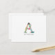 Carte à note plate avec un monogramme floral initial, lettre "A" avec nom en dessous.