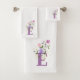 Le design présente Monogram plus Flowers dans un design floral. Initiale est la lettre E. Serviette personnelle.