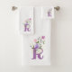 Le design présente Monogram plus Flowers dans un design floral. Initiale est la lettre R. Serviette personnelle.