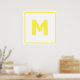 Lettre jaune M alphabet sur arrière - plan blanc avec bordure jaune. Aidez votre petit à apprendre l'alphabet avec cette lettre M design.