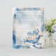 Profitez de Magic Heron Creation’s Blue Humpback Whale Lined Letter Stationery pour écrire des lettres à votre correspondant, la journalisation, prendre des notes, écrire des listes de choses à faire, ou ajouter à des revues à puces. Cette papeterie bordée présente une belle baleine à bosse bleu aquarelle sur arrière - plan marbré bleu avec varech et plantes de mer.