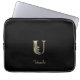 L'élégante pochette noire pour ordinateur portable dispose d'un monogramme botanique en or au centre.