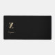 L'élégant tapis de bureau noir est doté d'un monogramme botanique en or au centre.