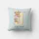 Le coussin de la crèche mignonne ou le coussin de la chambre de l'enfant a un arrière - plan bleu pastel pastel que vous pouvez changer à une autre couleur si vous cliquez sur le bouton personnaliser, puis regardez à droite pour le petit lien d'édition. Avant du coussin présente un adorable ours en peluche sur ses orteils à bout essayant d'atteindre une libellule et jaune pastel motif floral lettre J avec le texte disant J est pour Jenna et est prêt pour vous à changer le nom de votre enfant.