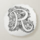 Lettre monographie R gribouillé coussin tiré à la main. Idéal pour la coloration, la broderie ou simplement gardé comme plan de conception monolettre R. La couleur de l'Arrière - plan peut être changée si nécessaire en blanc. © Dessin original à encre avec, articles commençant par R roses, arc-en-ciel, lapins, roquettes et framboises lettre art et design par Sarah Trett. www.sarahtrett.com pour www.mylittleeden.com