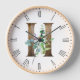 Horloge murale encadrée en bois avec boiserie rustique lettre H monogramme avec aquarelle eucalyptus et ornement lavande. Parfait pour les murs de la chambre ou du salon.