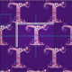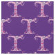 Un joli dessin original en T, assez fantaisiste, converti en lettres graphiques dans les tons violet et rose sur un arrière - plan violet foncé. La couleur Arrière - plan peut être changée à votre propre choix de couleur si nécessaire. Personnalisé avec votre propre initiale, ce tissu lit T, idéal pour les projets de couture customisés. Autres lettres disponibles. © Dessin et dessin original de Sarah Trett. www.sarahtrett.com pour www.mylittleeden.com