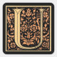 Cette simple lettre "U" est encadrée dans un très joli motif floral noir et or.