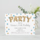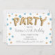Police simple et moderne de ballon de fête en feuille d'or avec confettis en feuille d'or et de bleu. Modifiez le texte pour n'importe quelle fête, anniversaire, remise de diplôme, retraite, douche de mariée, enterrement de vie de jeune fille ou retraite. C'est du faux feuillet, pas du vrai.