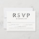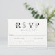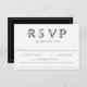 Lettres RSVP florales modernes et tendance, noir et blanc, avec support en noir et massif, avec accent de cadre blanc, cartes RSVP de mariage avec allergie alimentaire/note de restriction alimentaire pour les invités. Les lettres élégantes présentent des fleurs et des feuillages d'art blanc et noir délicat.