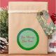 Un arrière - plan vert de forêt à thème de vacances avec un motif de pin bleu et vert créé à partir d'une gravure vintage. Ajoutez votre propre message personnel à cet autocollant !