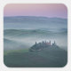 sticker photo souvenir avec un lever de soleil brumeux avec un ciel rose et brouillard entre les collines toscanes sur l'agriturismo podere il Belvedere ferme dans la Valdorcia (Vallée d'Orcia) entre Pienza et San Quirico en Toscane, Italie.