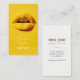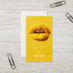 Ces cartes de visite élégants et à la mode présentent des lèvres 3D jaunes contre un fond jaune cool. Le dos de la carte comprend un ensemble contemporain de polices au charbon de bois, contre un arrière - plan léger en ivoire. Le design est saisissant et mémorable et fera une impression durable. Cette carte est pour le minimaliste moderne dans l'industrie créative. Les variantes sont disponibles dans d'autres combinaisons de couleurs.