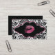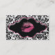 Carte de visite de spa de salon de maquilleur avec des lèvres et l'arrière - plan assez floral de damassé.