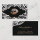 Carte de visite de spa de salon de maquilleur avec des lèvres et l'arrière - plan assez floral de damassé.