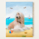 Un lévrier afghan assis sur la plage est une idée de cadeau parfaite pour quelqu'un qui aime cette race de chien.