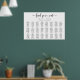 Cette affiche affiche affiche affiche un design minimaliste moderne et 24 tables. L'en-tête de texte du script est une image qui ne peut pas être modifiée. L'image de titre peut être redimensionnée pour correspondre à n'importe quelle taille d'affiche. Tous les autres textes sont entièrement modifiables. Pour une personnalisation plus avancée de cette conception, il suffit de cliquer sur le bouton "Customiser" ci-dessus.