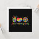 Cette carte de voeux présente les mots "paix, amour, égalité" aux côtés d'un signe de paix, d'un coeur et d'un tournesol de couleur arc-en-ciel, ce qui en fait un ajout parfait pour les membres et les alliés de la communauté LGBTQ, en particulier pendant le Mois de la fierté.
