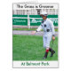 L'herbe est plus verte dans le pré de Belmont. Un sourire et des soies blanches de port heureuses de "John Velasquez" de jockey avec les points noirs, entre dans le pâturage vert de ce champ de courses historique dans Elmont, NY pendant qu'il se dirige vers cette herbe verte succulente. L'arrière - plan présente le signage vert iconique qui entoure la balustrade blanche du pré.
