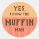 Un drôle d'autocollant de la chanson "Connais-tu l'homme muffin... ?" Va aussi pour les enfants et les parents :)
