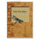Une belle libellule bleue orne cette carte. Un arrière - plan d'écriture sur un papier bronzage chaud. Entrez dans votre propre texte pour faire à cette carte uniquement vos propres.