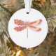 Artiquement dessiné, or, libellule bijouée de rouge et ailes décorées de rouge, fleurissant, cerise japonaise bijouée sur arrière - plan blanc. La libellule d'or.