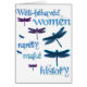 Le slogan féministe humoristique, "les femmes polies font rarement l'histoire," est accompagné des libellules aux nuances de bleu et du pourpre sur un éventail de produits. Trouvez les T-shirts, la papeterie, et les articles de ménage avec cette conception colorée.