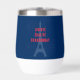 Tournée amusante sur le fameux "Liberté, égalité, fraternité" pour les amateurs de vin : Liberté, Égalité, Chardonnay ! Soirez à la maison pour une bonne soirée autour d'un verre de vin ou une soirée relaxante. Lettres rouges audacieuses sur arrière - plan bleu, avec la tour Eiffel de Paris visible.