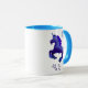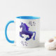 Cette licorne ombragée par bleu adorable fonctionne entre les étoiles. Les étoiles bleues sont au-dessus de et dessous. La conception est répétée des deux côtés. l'image ©T.A.Paxton, j'ai choisi la version avec la jante de bleu de poudre et la manipule pour accentuer la licorne et les étoiles bleues mais la tasse est entièrement personnalisable avec la pièce pour un nom ou un changement du style.