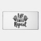 A bold and uplifting motivational design featuring the powerful phrase “Lift Smile Repeat” with a detailed barbell illustration. It embodies strength, positivity, and perseverance — the mindset of those who push their limits and find joy in every rep. The clean black design mixes inspiration with determination, creating an empowering visual statement for anyone passionate about fitness, weightlifting, or gym life.