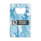 This bottle opener features a unique light blue camouflage pattern with playful white polka dots, reminiscent of waves crashing on a serene beach. The abstract yet military-inspired design adds a touch of cool style to any gathering. Perfect for barbecues, parties, or everyday use, this durable opener is as functional as it is fashionable. Make your next event a bit more stylish with this eye-catching accessory.