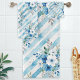 Refresh your bathroom with these light blue stripe and floral patterned towels. Featuring a soft pattern in calming blue tones, this design combines modern minimalism with relaxed coastal style. Ideal for spa-inspired bathrooms, beach homes or guest rooms, this design creates a polished, styled look, whether displayed on towel bars, folded on open shelving, or packed for a weekend by the water.
