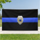 Il n'y a pas plus d'amour qu'il n'a donné sa vie à un ami. Il s'agit d'une fantastique toile de fond 6x10 pour toute séance photo, communiqué de presse, événement public ou affichage. Vous pouvez customiser ce design avec le nom de votre service d'application de la loi ou le nom de l'événement et vous pouvez même télécharger des images pour répondre à vos besoins. Nous les avons dans des modèles intérieurs ou extérieurs, avec ou sans grommets. Obtenez votre bannière Ligne Bleue Mince aujourd'hui.