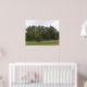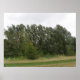 Cette belle impression présente une photo d'une ligne d'arbres et le bord de quelques prairies. La photo a été prise en Grande-Bretagne dans une réserve naturelle. Les arbres semblent pencher d'un côté.