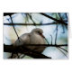 Un oiseau blanc est assis sur une branche, haut dans un arbre.