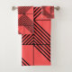 Ce kit de serviettes a un design art déco carré avec des lignes en diagonale.