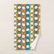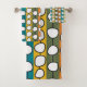 Cet ensemble de serviettes a un design moderne du milieu du siècle de cercles blancs "déformés" reliés par des lignes noires sur un champ de bandes vertes, orange, turquoise et or. Si vous aimez le design mais préférez différentes couleurs, envoyez-moi un message.