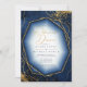 Un arrière - plan d'aquarelle dans les tons du bleu royal à la marine est surmonté d'une abstraite de lignes dorées fines et d'effets lumineux scintillants pour créer les pièces de cette belle suite mariage. L'invitation de Dîner de répétition présentée ici présente également un magnifique cadre de dégradé pour contenir tout votre texte. Ajoutez facilement vos propres noms, date mariage et détails de l'événement à l'aide du modèle fourni. Recherchez ID867 pour voir d'autres pièces et choix de couleurs pour cet ensemble.