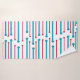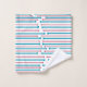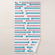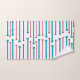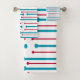 Ce kit de serviettes a un design moderne du milieu du siècle de lignes rouges et bleues avec des cercles au bout sur un champ de blanc.