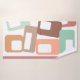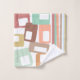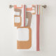 Ce kit de serviettes présente un design moderne du milieu du siècle avec des lignes et des rectangles dans des tons rétro de rouge, jaune, orange, bleu, vert, marron et rose.