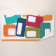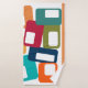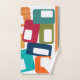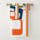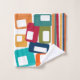 Ce set de serviettes a un design moderne du milieu du siècle des lignes et des rectangles dans les tons rétro d'orange, or, canneberge, turquoise, vert, bleu, turquoise et vert.